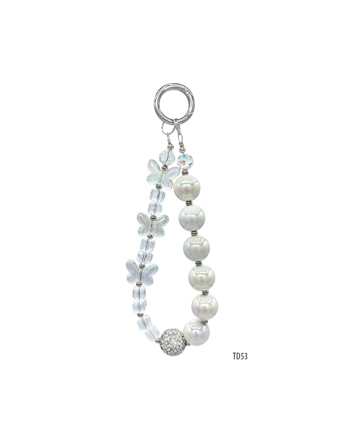 Die Telefonperlen sind ein dekoratives Accessoire für Smartphones, das mit hübschen Anhängern verziert ist und Ihrem Gerät einen originellen Stil verleiht. Sie können es am Handgelenk als Armband oder um den Hals wie eine Kette tragen.