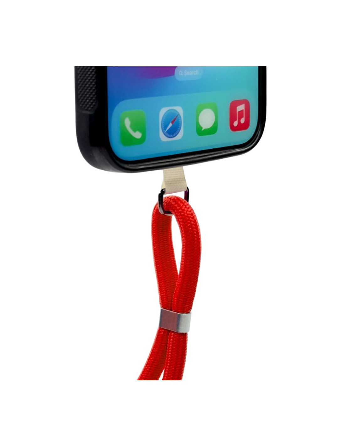 Universeller Handy-Lanyard-Aufnäher für Schlüsselbänder und Riemen, der in die Ladeöffnung des Smartphones eingesetzt wird.