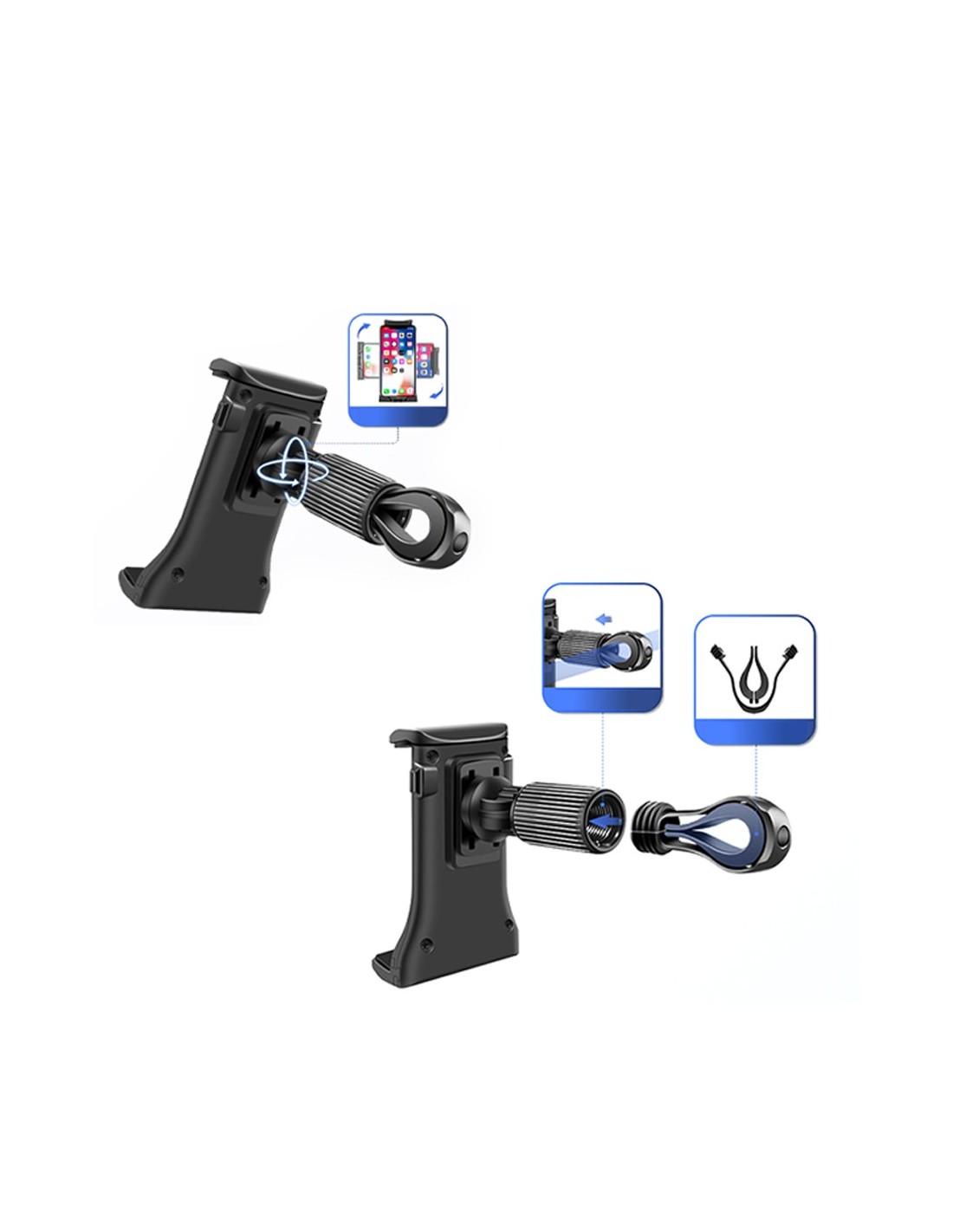 This universal support is able to perform a rotation of 360° to allow you to keep your smartphone in the most comfortable position, horizontally and vertically.