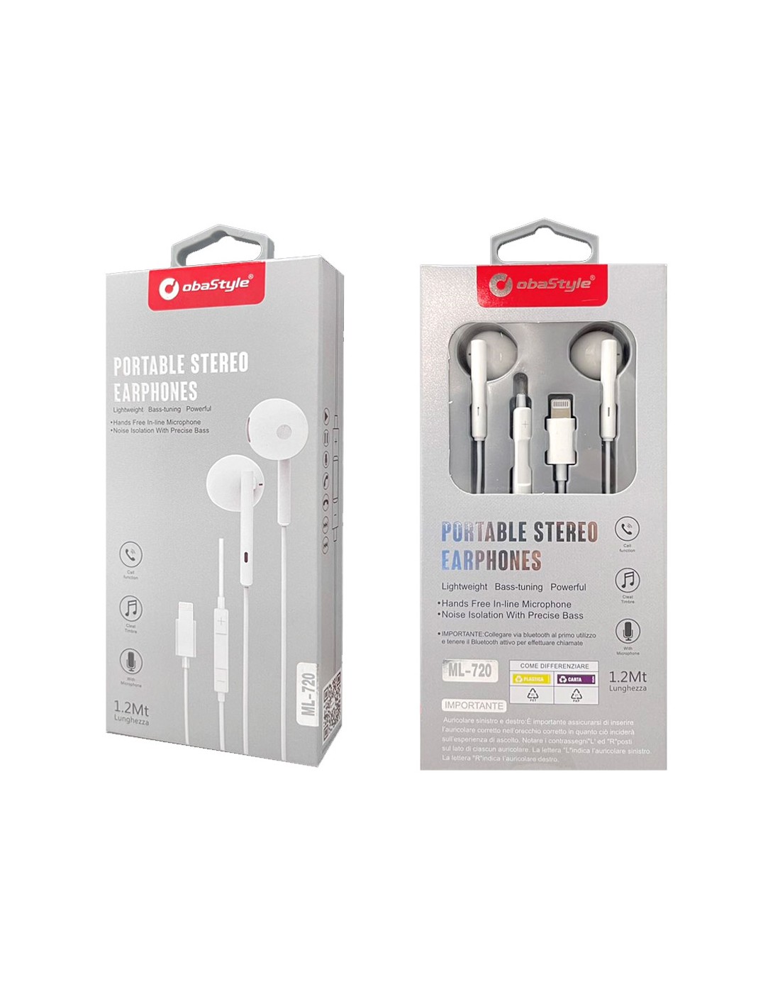 Features: lightning connector; integrated multifunction mic with volume control; answer/end call button; Hi-Fi sound effect; lenght 1.2mt