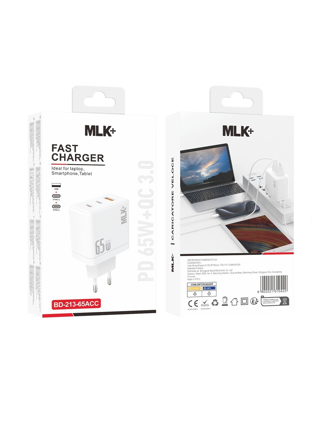 MLK+ DUAL PORT PD+QC 65W WALL CHARGER