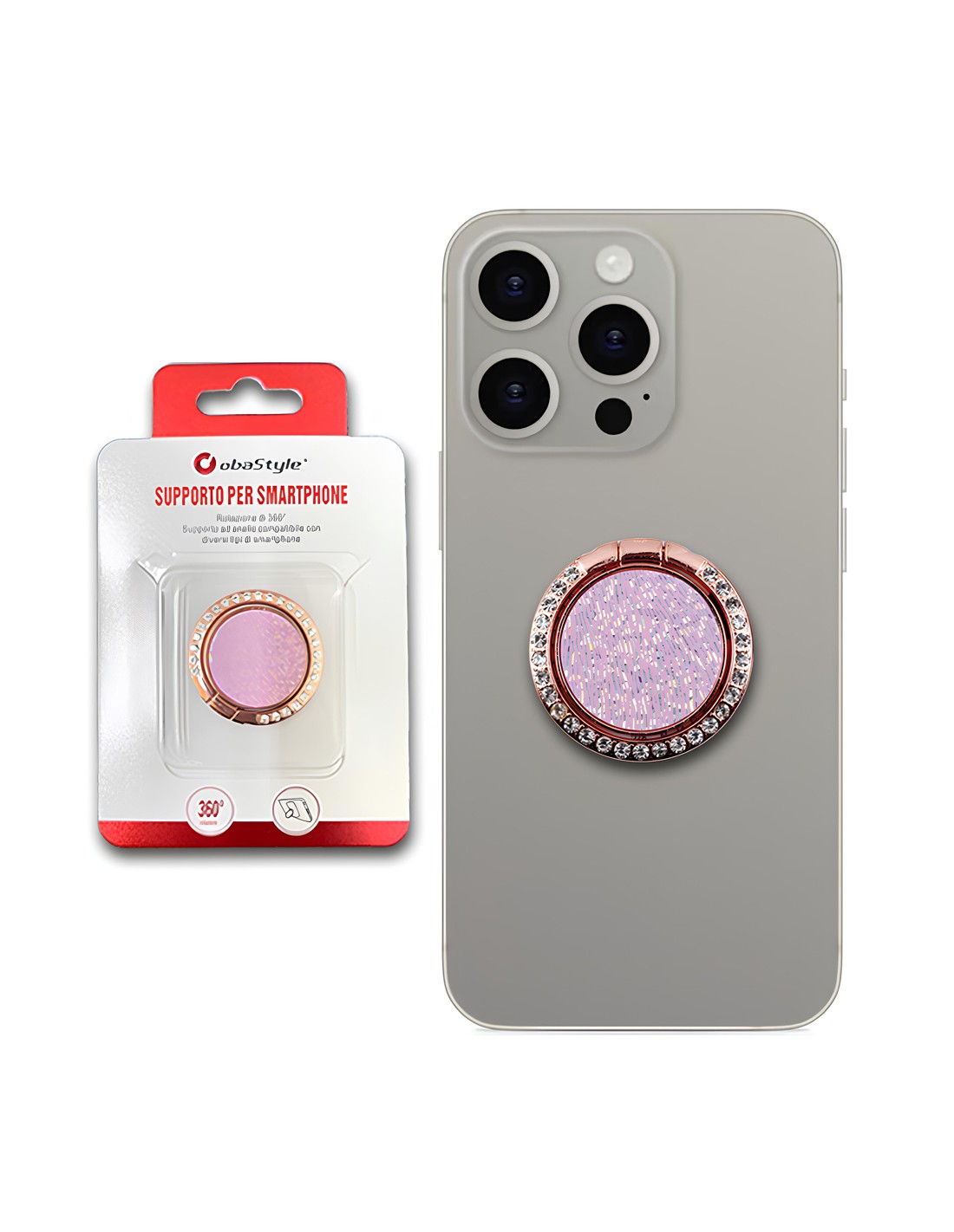 Glitter removable ring support that allows the smartphone to fit perfectly in the palm of your hand.