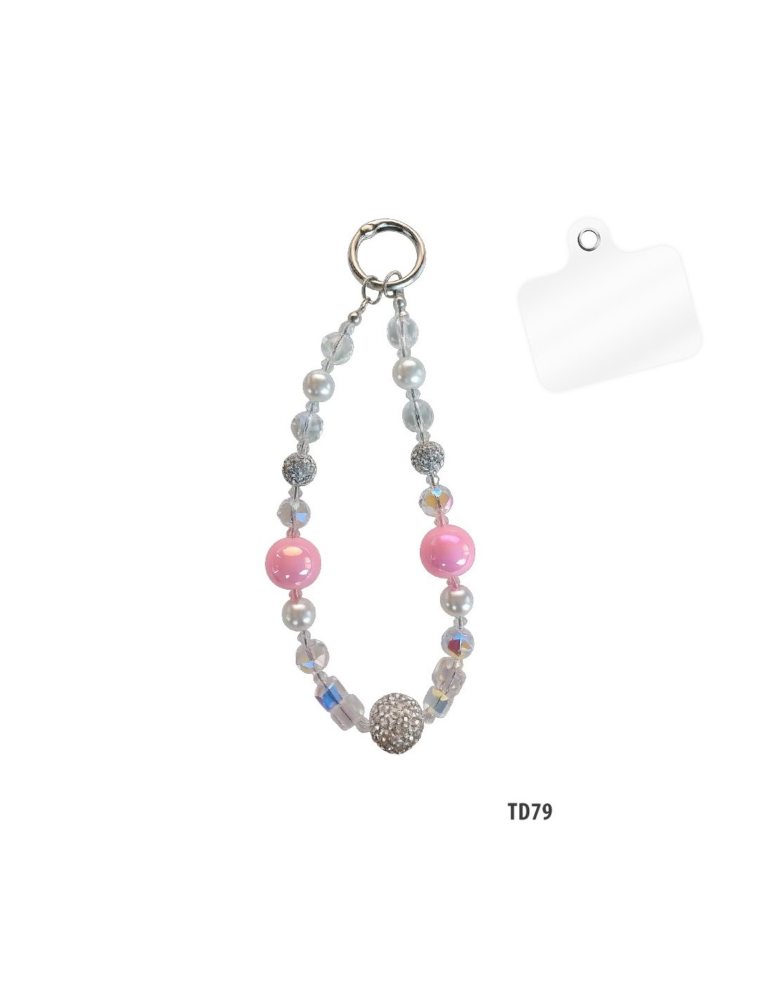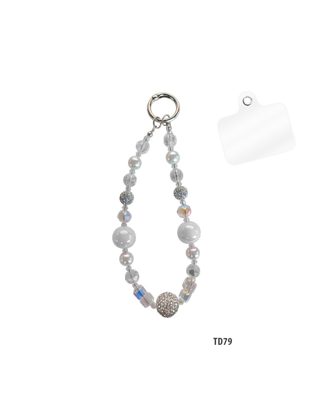 The phone beads are a decorative accessory for smartphones embellished with pretty charms that give an original style to your device. You can wear it on your wrist as a bracelet or around your neck like a necklace.