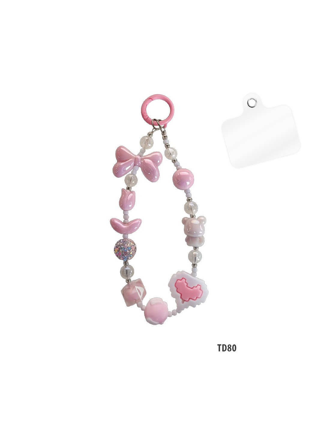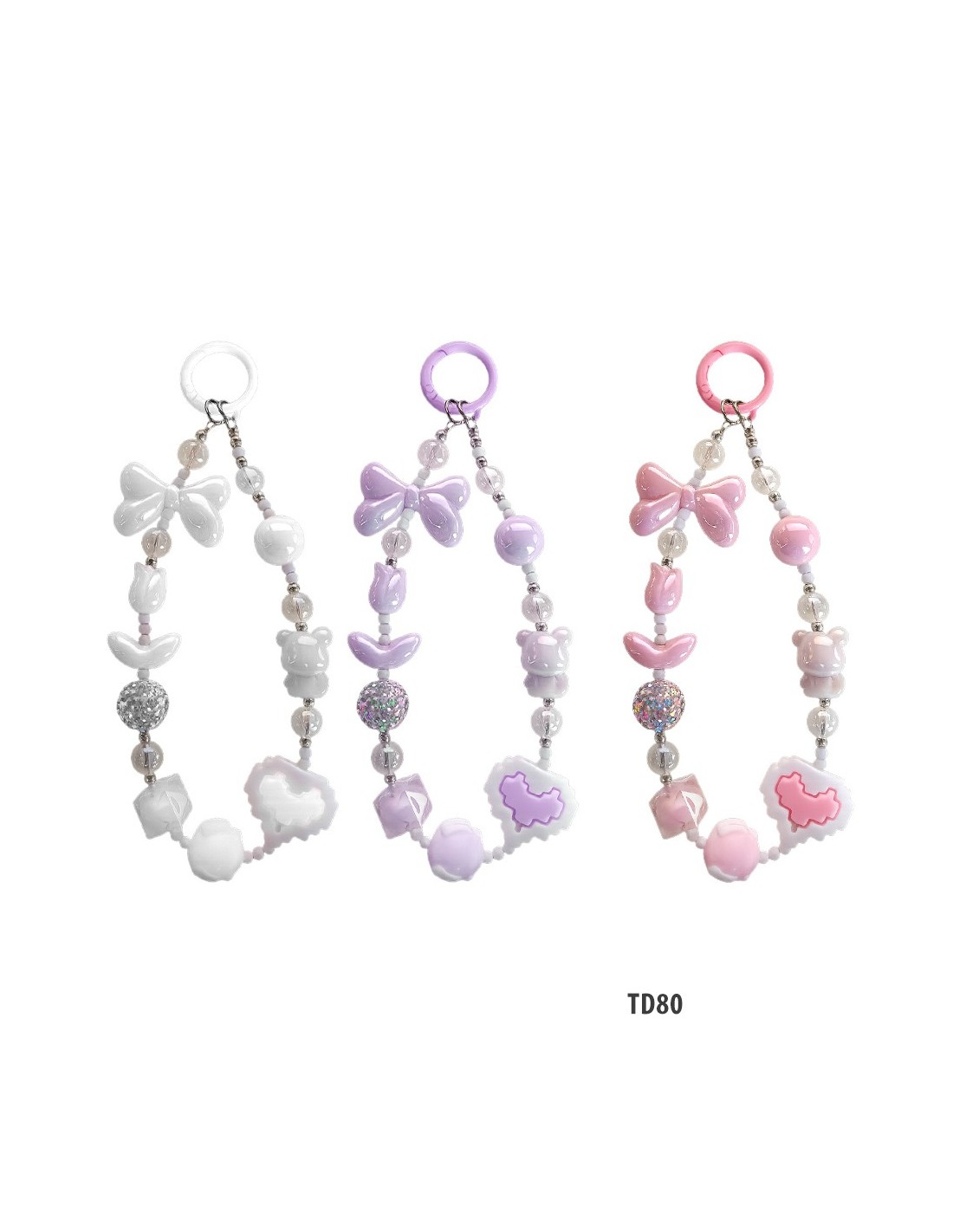 Phone beads embellished with pretty charms that give an original style to your device.
