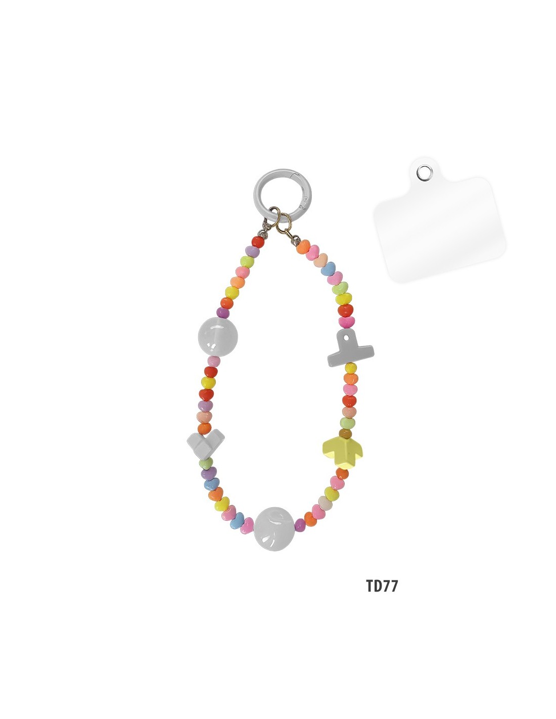 The phone beads are a decorative accessory for smartphones embellished with pretty charms that give an original style to your device. You can wear it on your wrist as a bracelet or around your neck like a necklace.