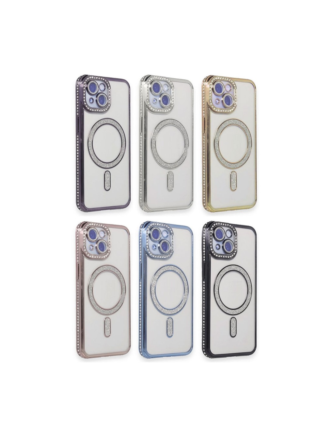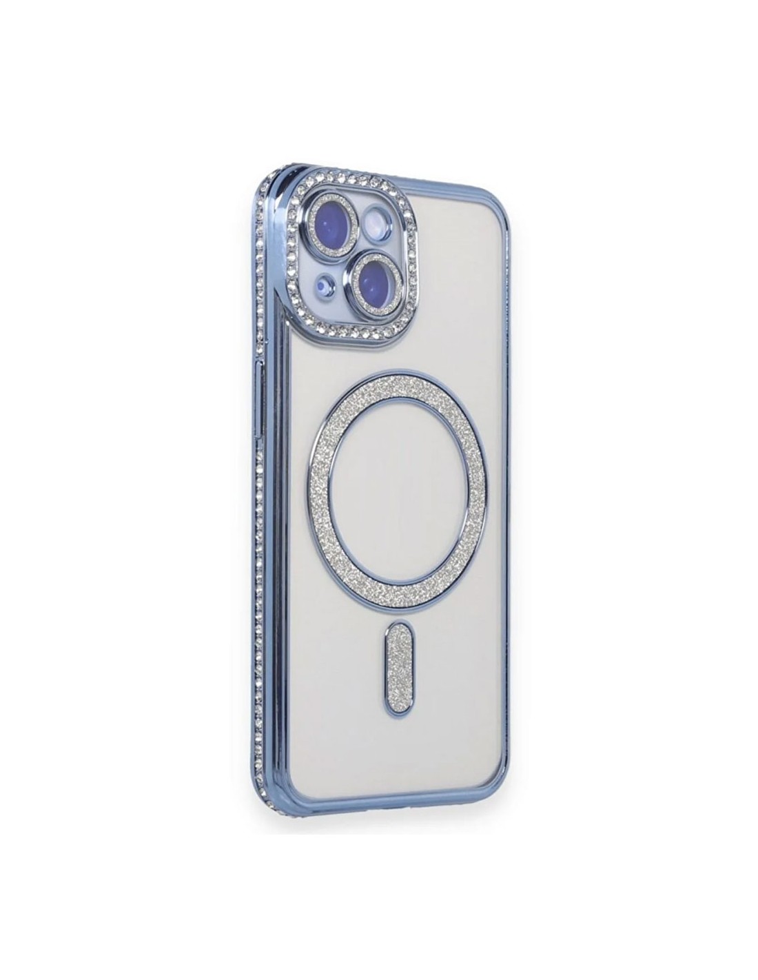 Couverture magnétique souple transparent avec bord avec aimant en strass et paillettes, compatible avec la charge Qi.