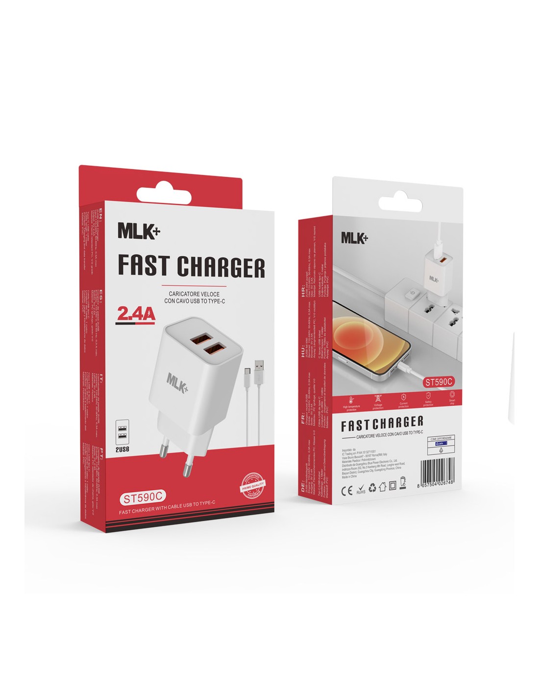 MLK+ DUAL USB CHARGER WITH USB TO TYPE C CABLE