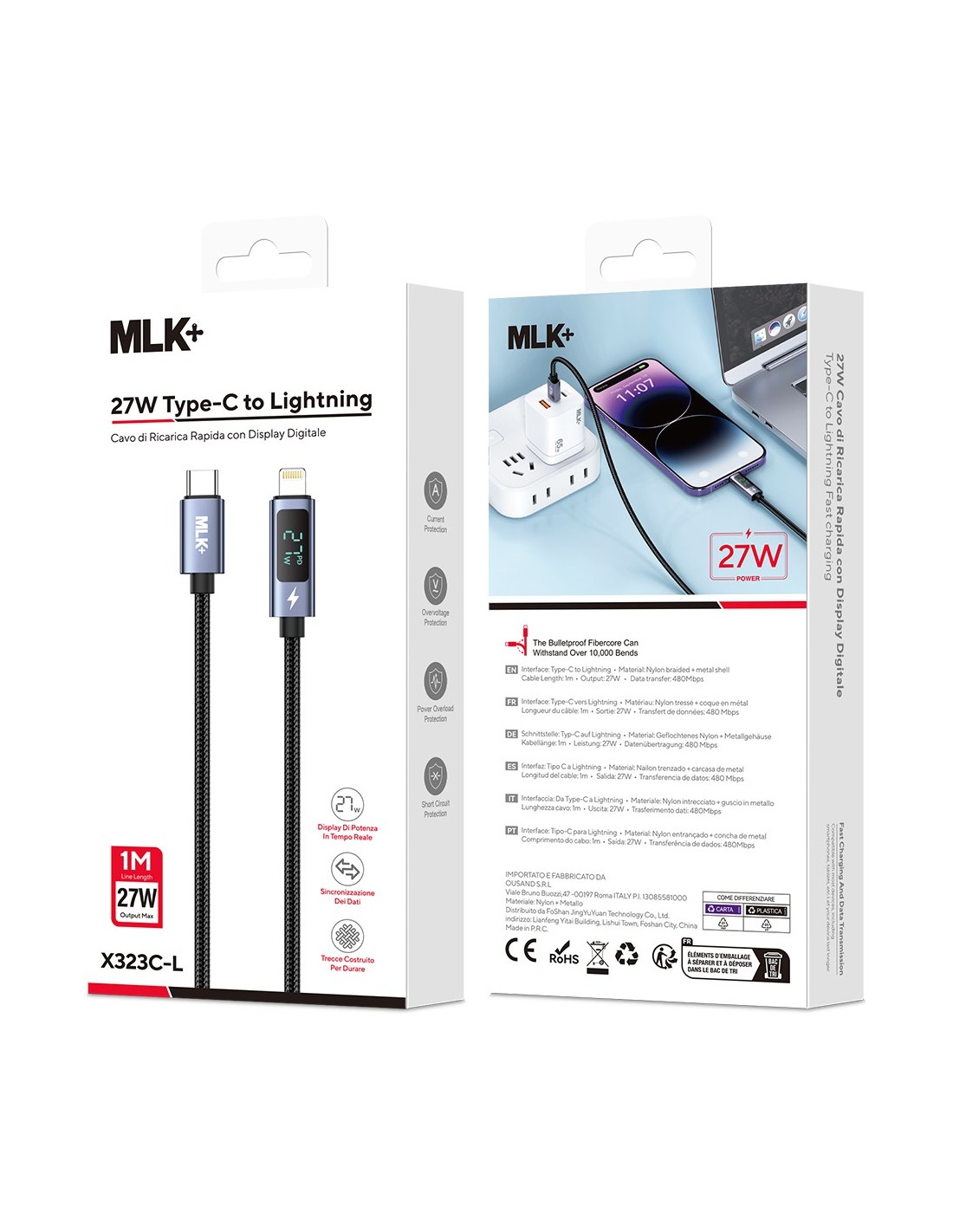 MLK+ CÂBLE DE CHARGE TRESSÉ TYPE-C VERS LIGHTNING AVEC AFFICHAGE NUMÉRIQUE