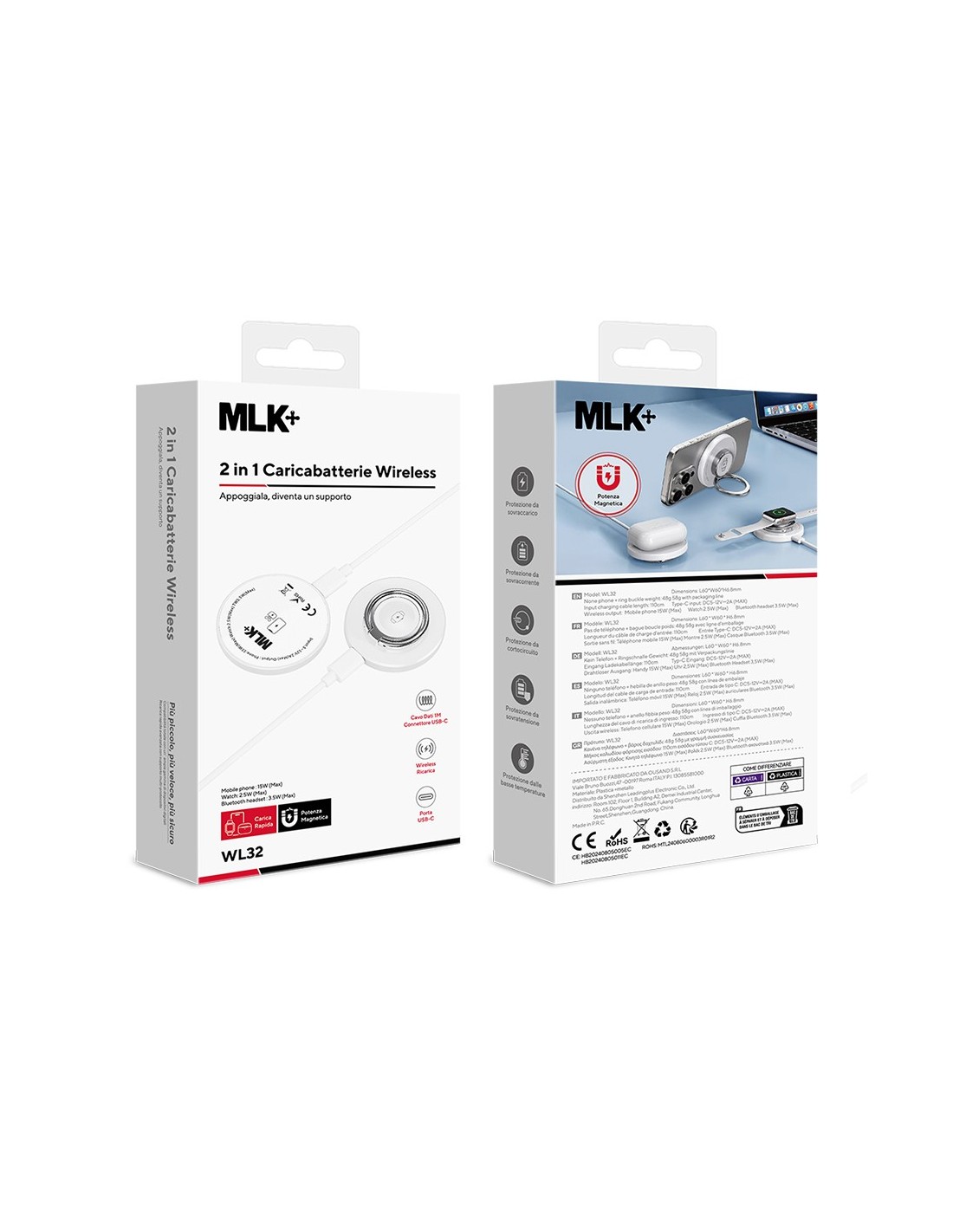 MLK+ CHARGEUR MAGNÉTIQUE SANS FIL 15 W 2 EN 1 AVEC SUPPORT INTÉGRÉ