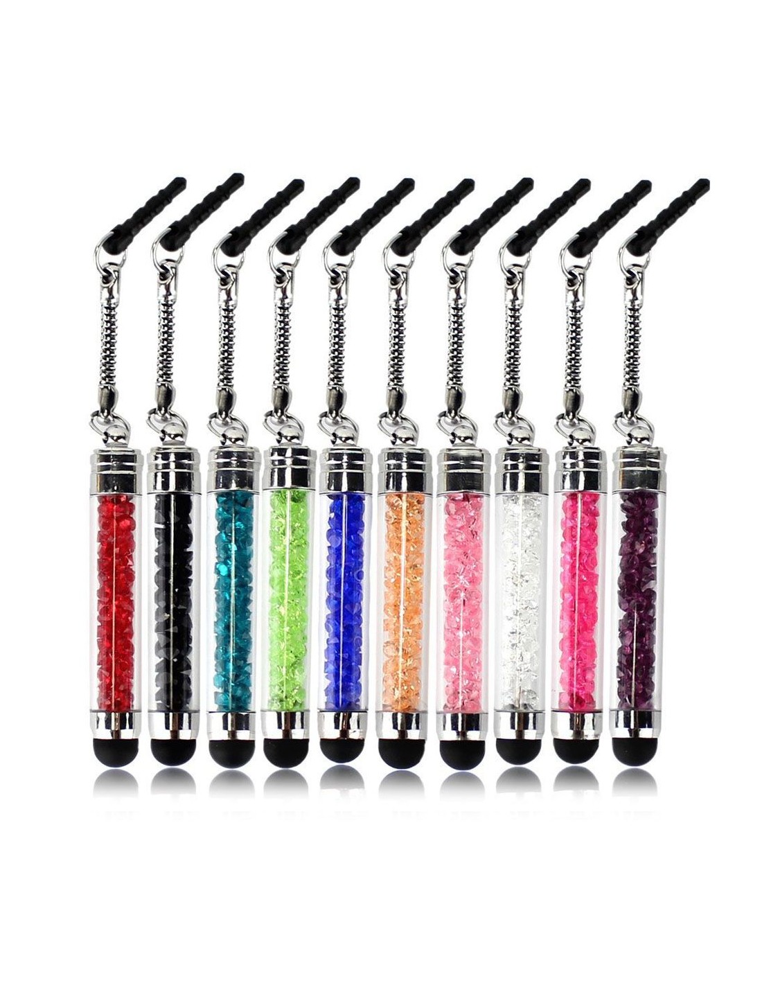 Stylet pour écrans tactiles de smartphones et tablettes avec strass et crochet de support pour trous d'écouteurs