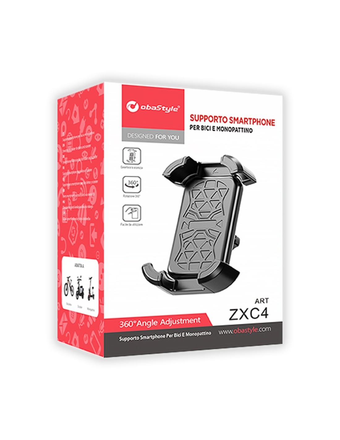 Il supporto è inoltre in grado di compiere una rotazione di 360° per consentire di tenere lo smartphone nella posizione più comoda, sia in orizzontale che in verticale.