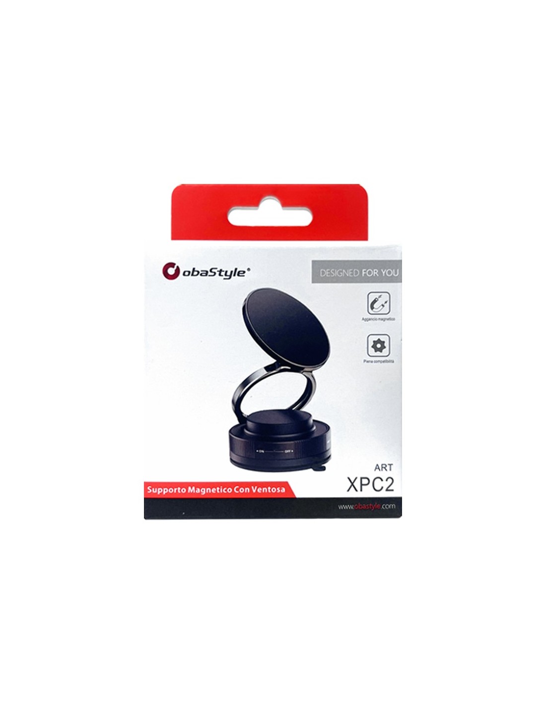 - Sistema ON/OFF della ventosa per un fissaggio e rimozione facili.
