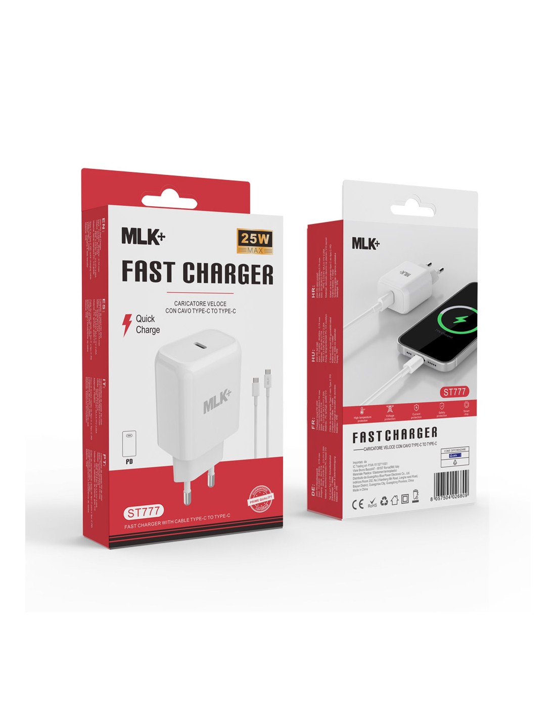 MLK+ CARICATORE DA RETE PORTA PD CON CAVO TYPE C TO TYPE C 25W