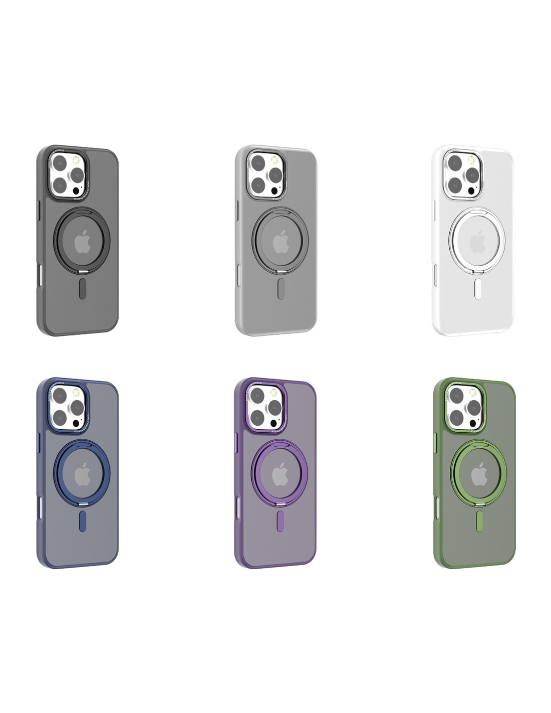 Cover rigida semitrasparente magnetica con bordi colorati e frosted effect. Compatibile con la ricarica Qi.