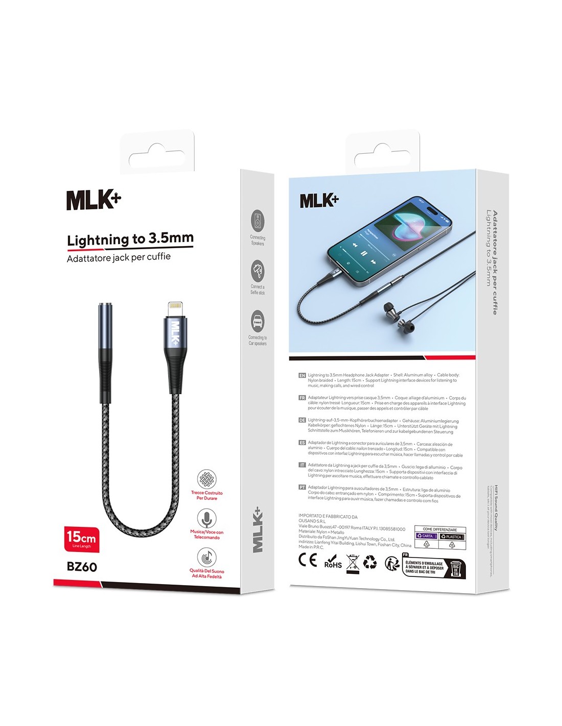 MLK+ ADATTATORE AUX DA LIGHTNING A JACK 3.5MM