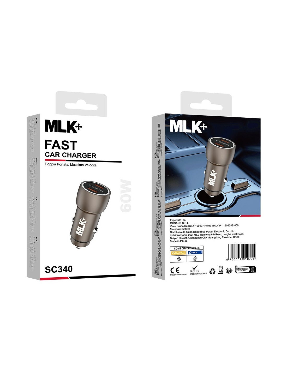 MLK+ CARICATORE DA AUTO FAST CHARGE DOPPIA PORTA USB-C 60W