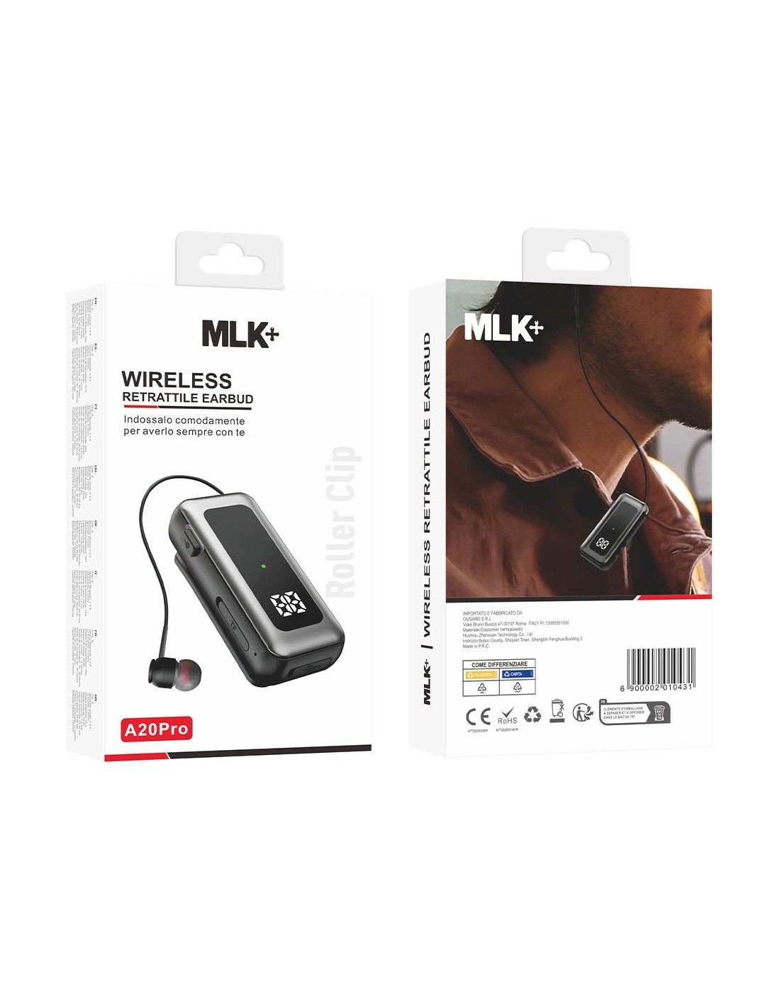 Auricolare Bluetooth mono con cavo riavvolgibile e clip di aggancio