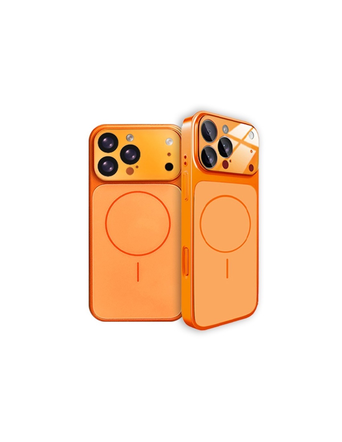 Cover rigida magnetica in vetro satinato dotata di una protezione fotocamera realizzata in vetro temperato. PACCO MONOCOLORE ARANCIONE