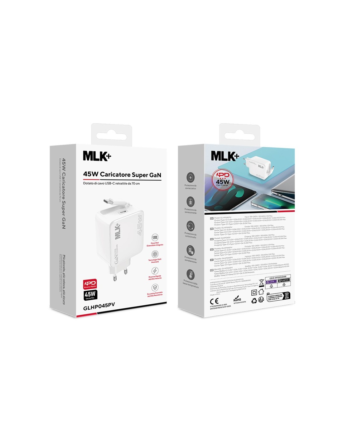 MLK+ CARICATORE RAPIDO GaN 45W CON CAVO USB-C INTEGRATO