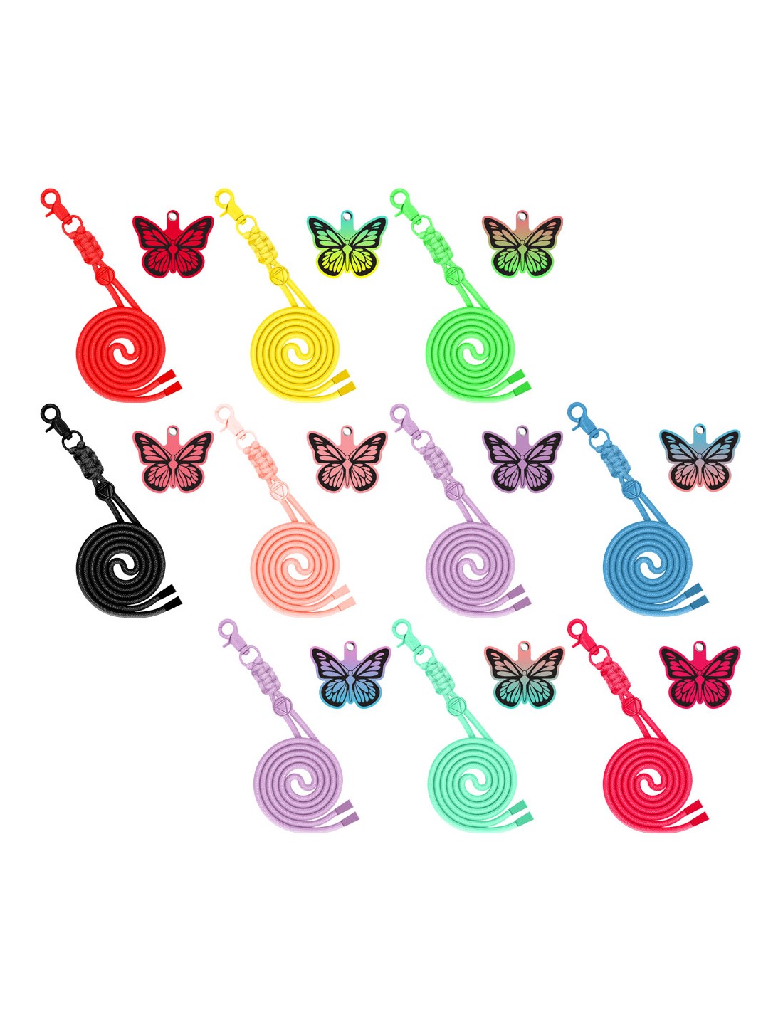 Laccio da collo dotato di gancio e simpatici emoji farfalla per custodia smartphone, disponibile in colori assortiti.