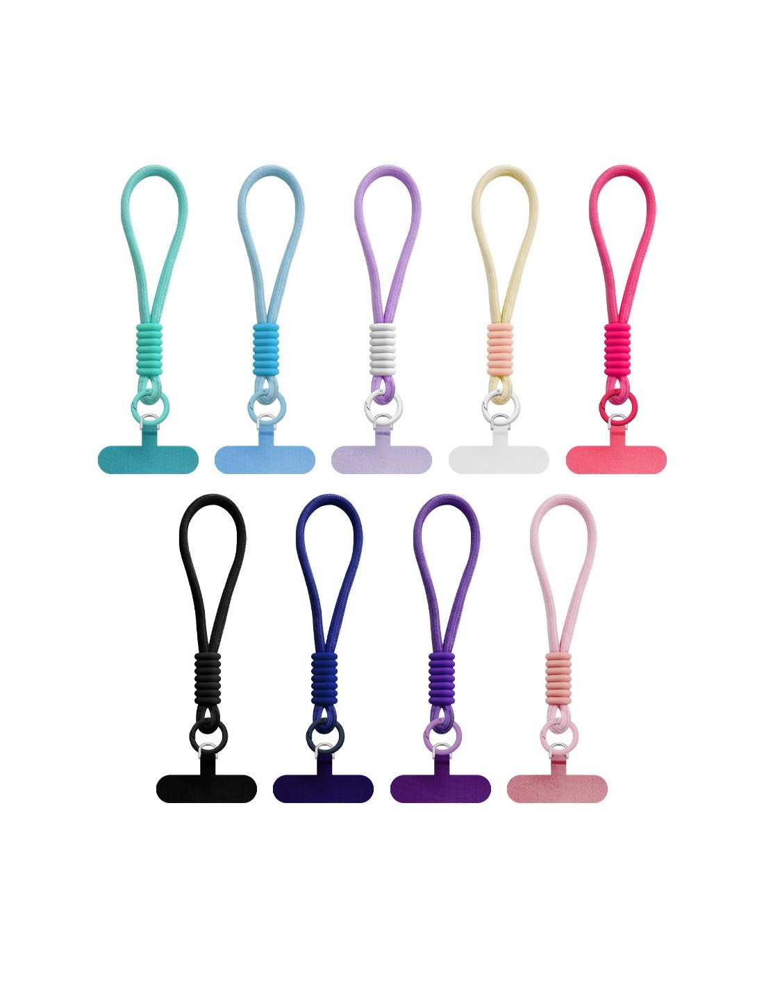 Laccio da polso con patch per custodia smartphone, disponibile in colori assortiti.