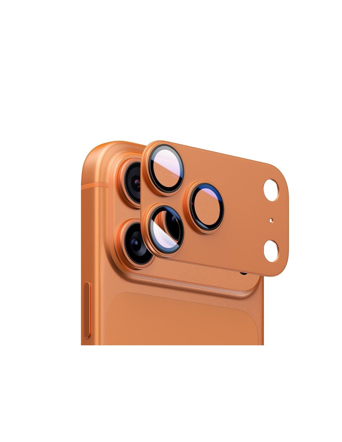 Protezione integrale per lenti fotocamera specifica per iPhone realizzata in alluminio satinato (effetto opaco) per un look elegante e resistente.